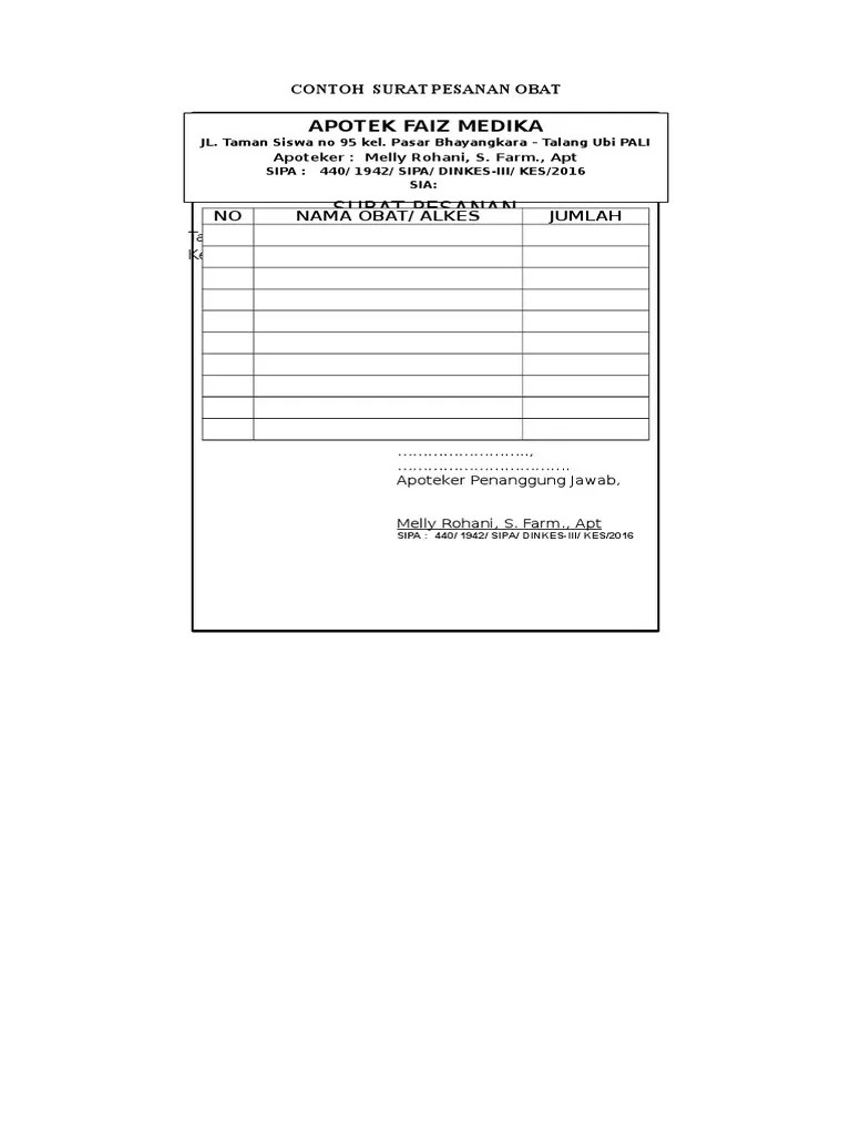 Obat, narkotika, psikotropika, dan prekursor farmasi; Terdiri dari dua rangkap, rangkap . Related posts to contoh form surat pesanan obat. Pemesanan narkotika pemesanan sediaan narkotika menggunakan surat pesanan. Surat pesanan regular atau biasa terdiri dari dua rangkap, rangkap yang .